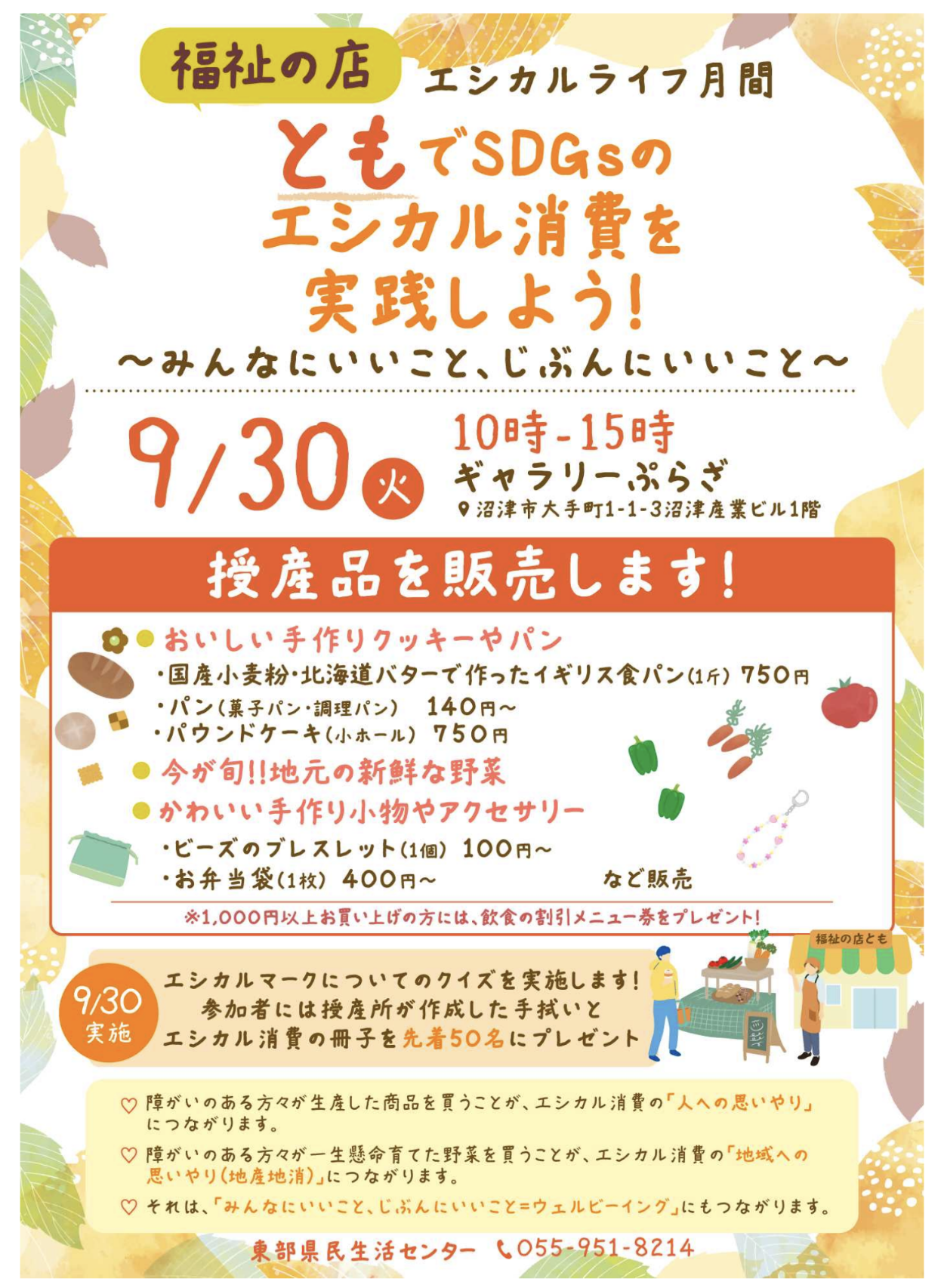 【沼津市】「第2回 福祉の店ともでエシカル消費を実践!」が9月30日にギャラリーぷらざで開催されます