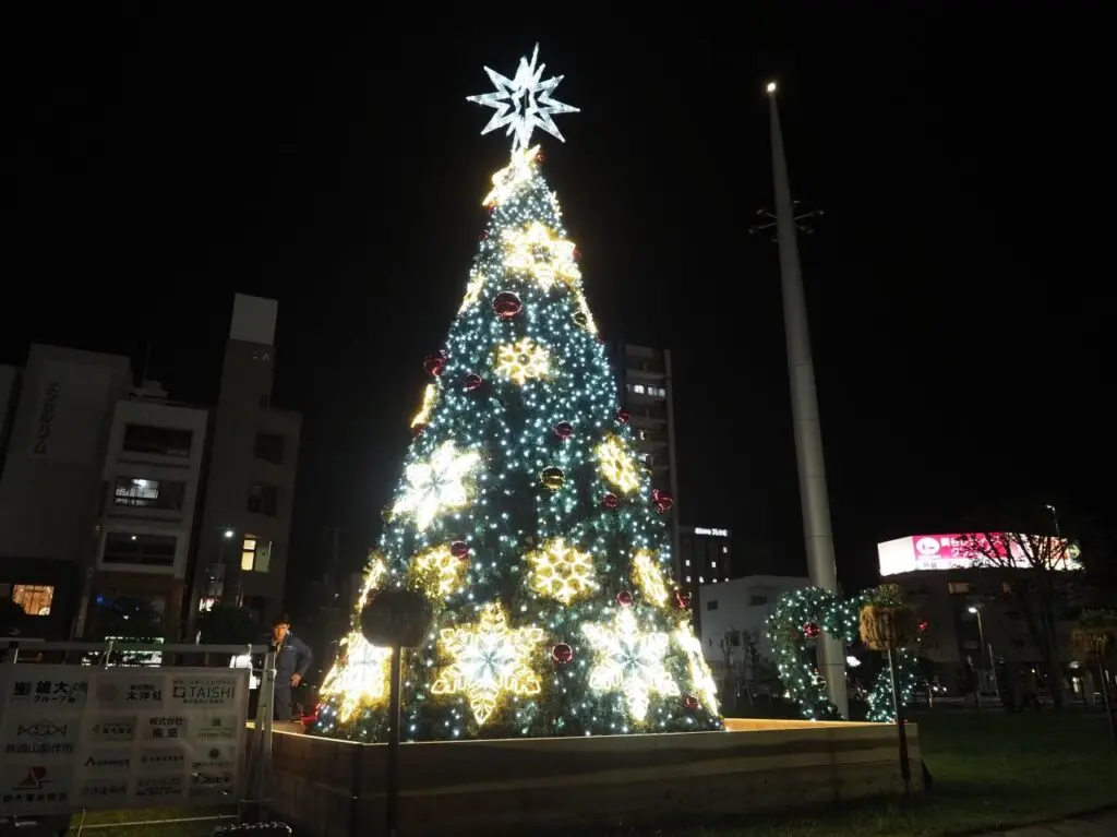 クリスマスツリーの点灯期間は2025年11月1日から2026年2月27日まで。点灯時間は日没〜23時です。