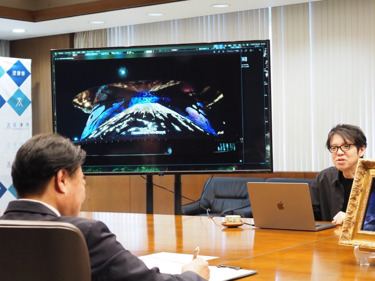 この決定は、2025年11月27日に沼津市役所で行われた頼重秀一・沼津市長によるトップセールスの場で、NAKANO さんに直接依頼されたものです。沼津市が先進的な取り組みを行う NAKANO さんに注目していたこと、そして NAKANO さん自身が「沼津からメディアアートを広げたい」という思いを持っていたことが重なり、今回の実現につながりました。